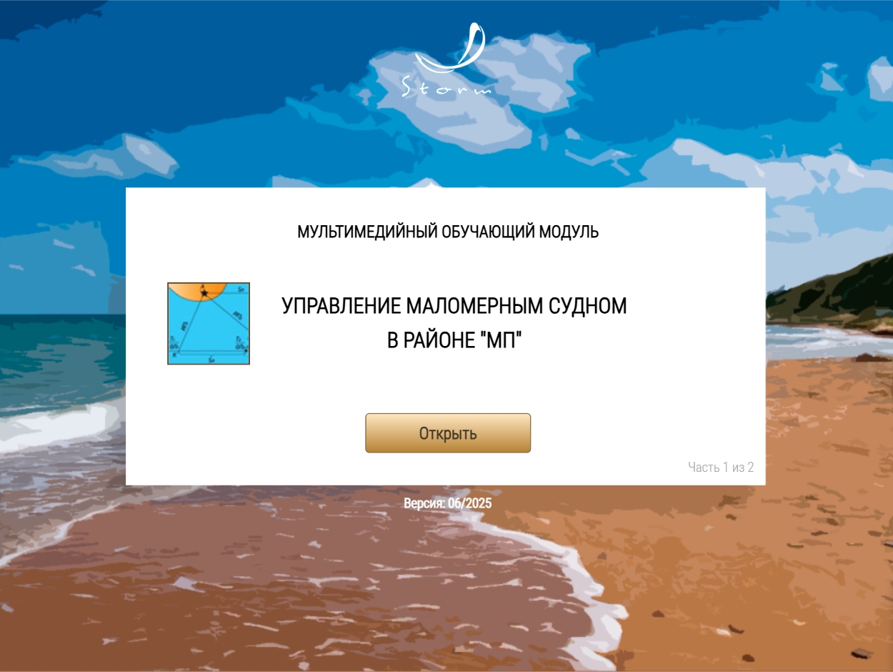 Мультимедийный обучающий модуль предназначен для использования при теоретической подготовке судоводителей маломерных судов, поднадзорных ГИМС МЧС России, а также маломерных судов, используемых в коммерческих целях, и прогулочных судов, к плаванию в районе «МП».