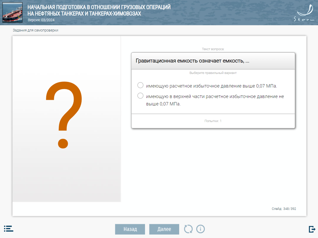 Мультимедийный обучающий модуль предназначен для использования при подготовке капитанов, лиц командного и рядового состава нефтяных танкеров и танкеров-химовозов.