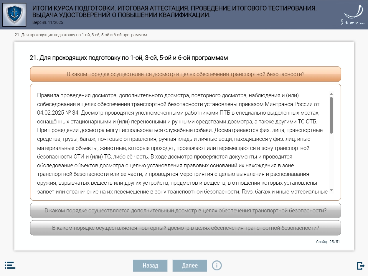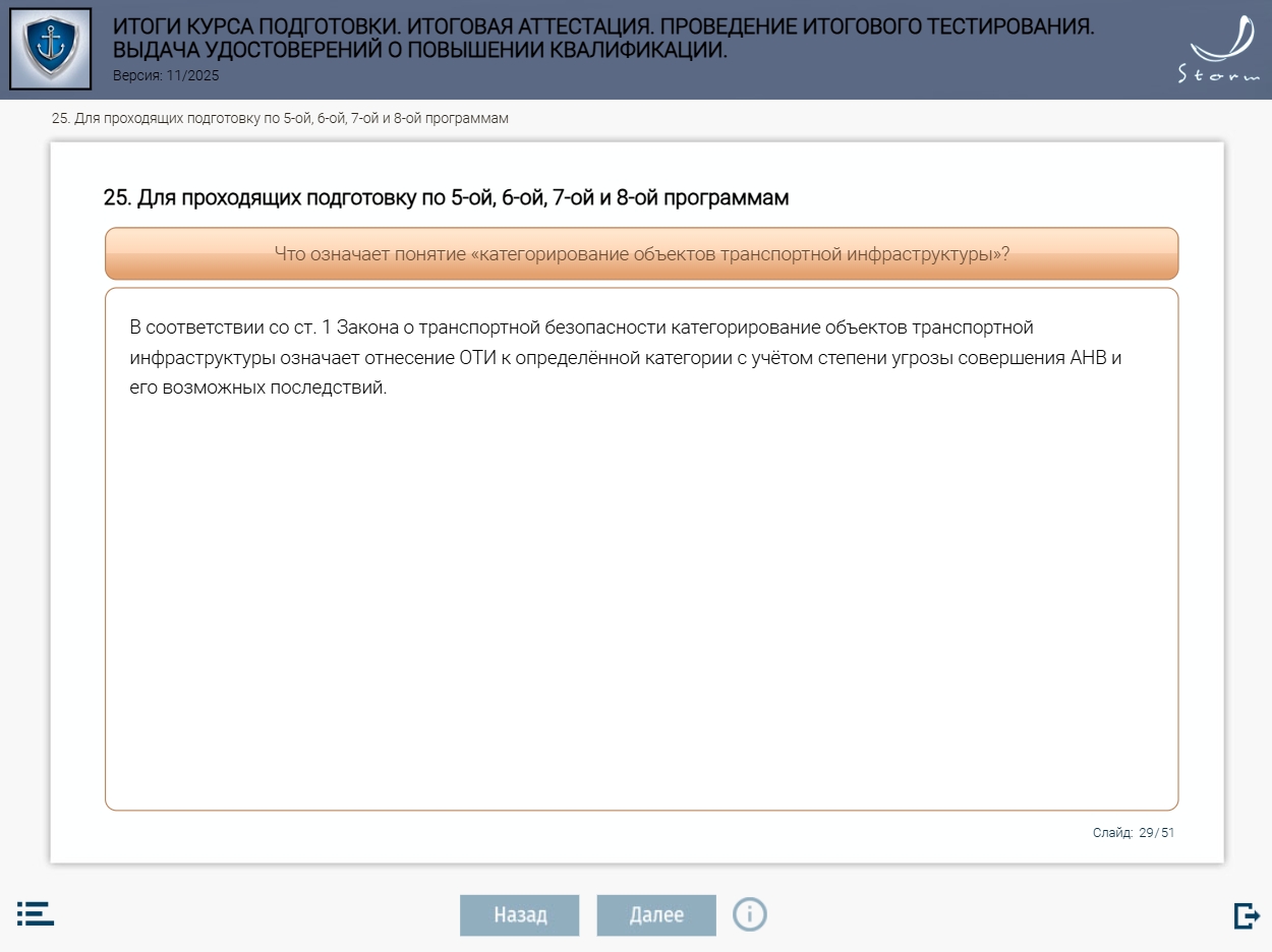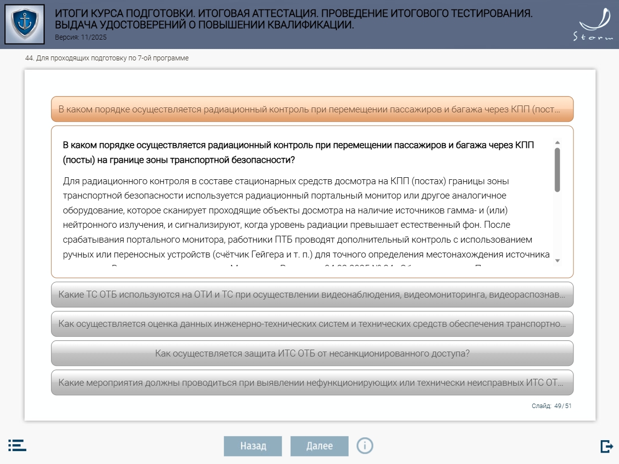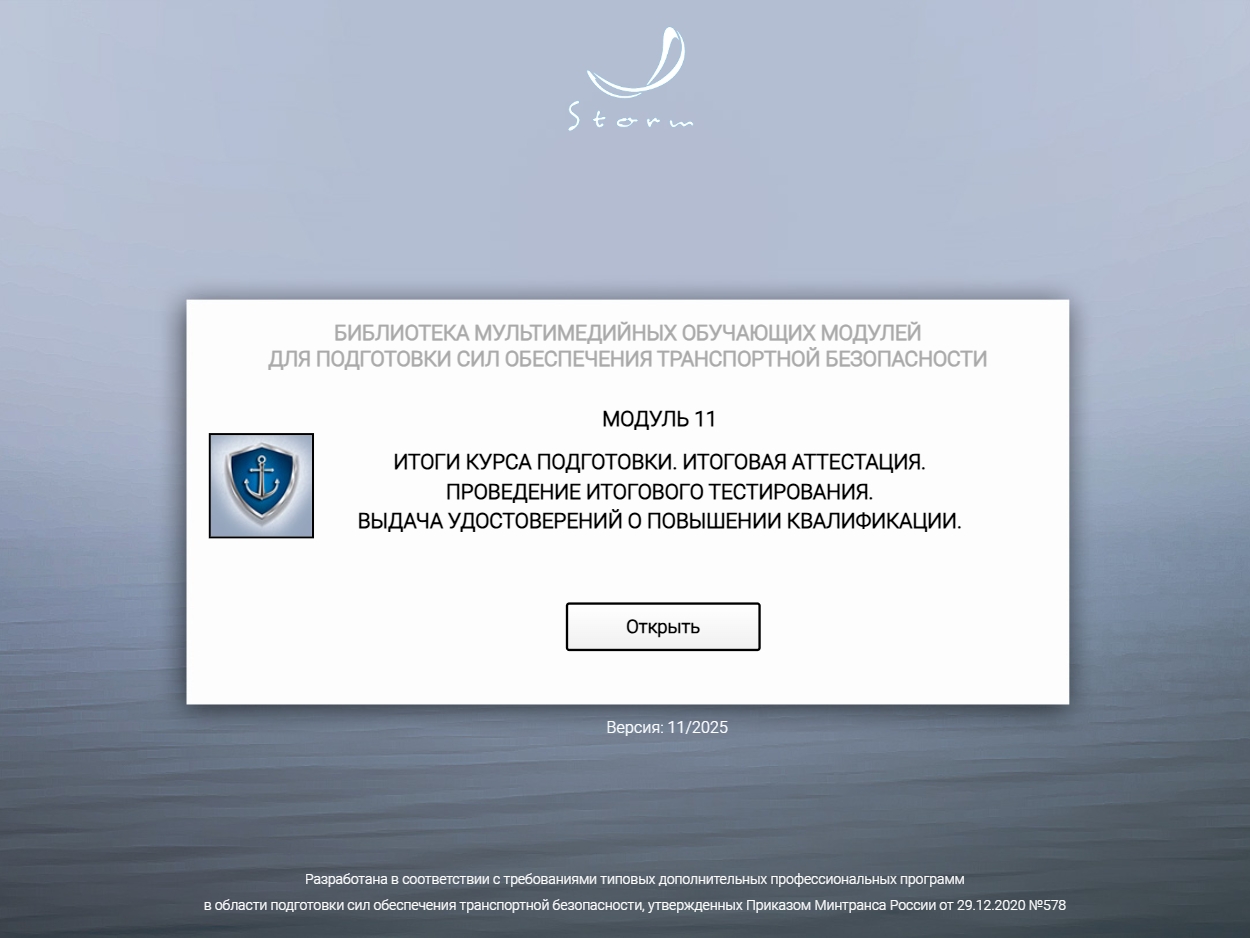 Мультимедийный обучающий модуль предназначен для теоретической подготовки работников сил обеспечения транспортной безопасности в соответствии с приказом Минтранса России от 29.12.2020 № 578 «Об утверждении типовых дополнительных профессиональных программ в области подготовки сил обеспечения транспортной безопасности».