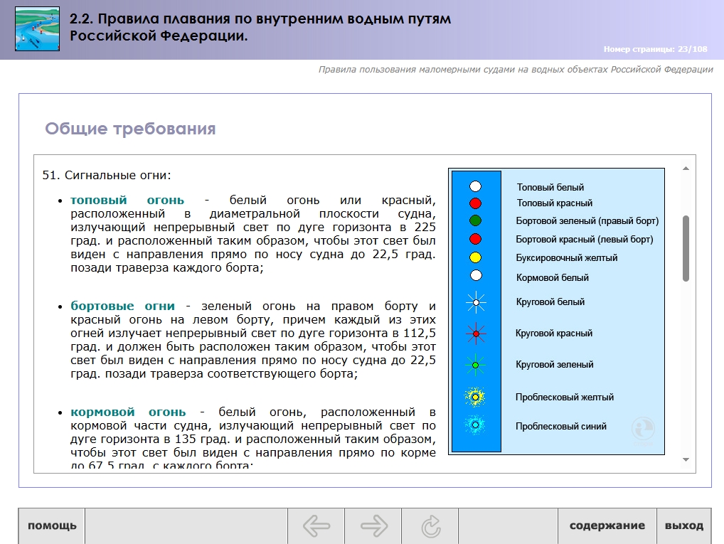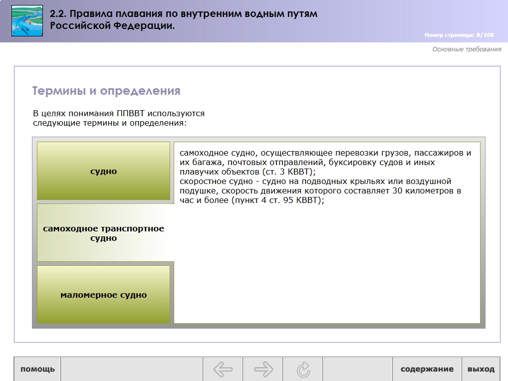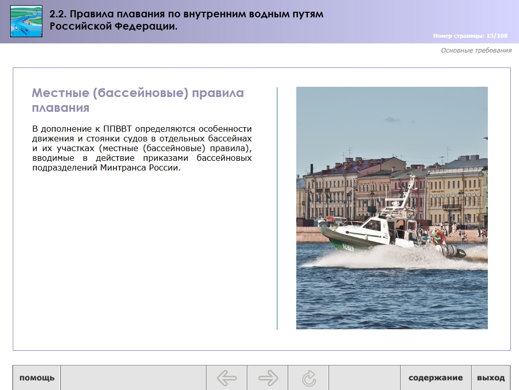 Мультимедийный обучающий модуль предназначен для теоретической подготовки государственных инспекторов по маломерным судам ГИМС МЧС России.