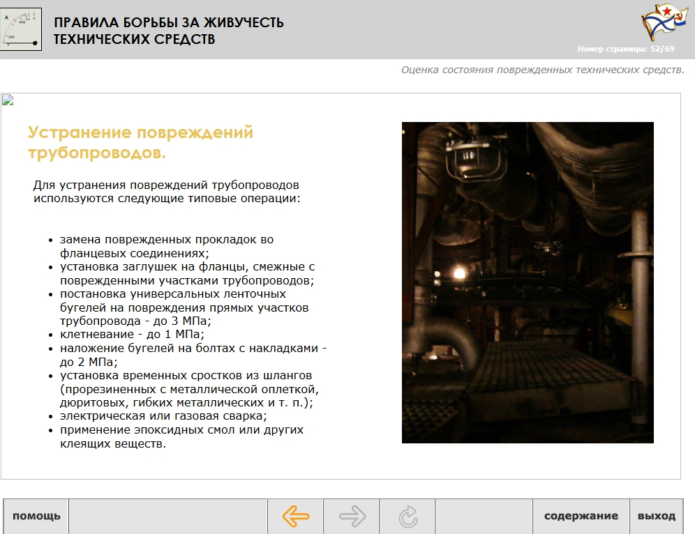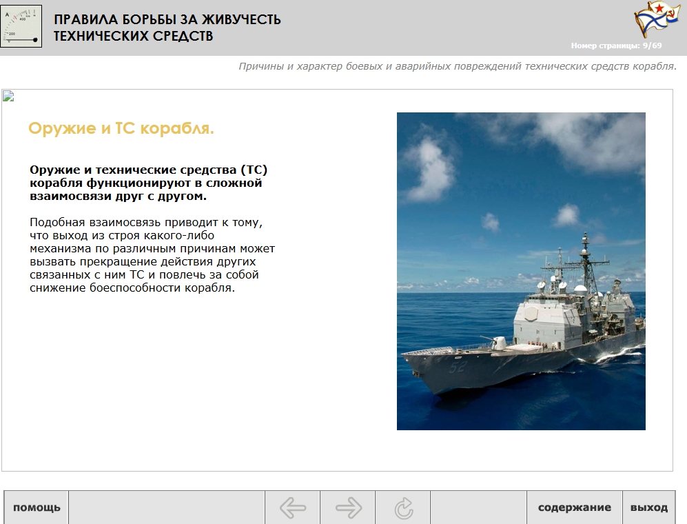 Мультимедийный обучающий модуль (МОМ) предназначен для использования при теоретической подготовке личного состава кораблей и курсантов по борьбе за живучесть.